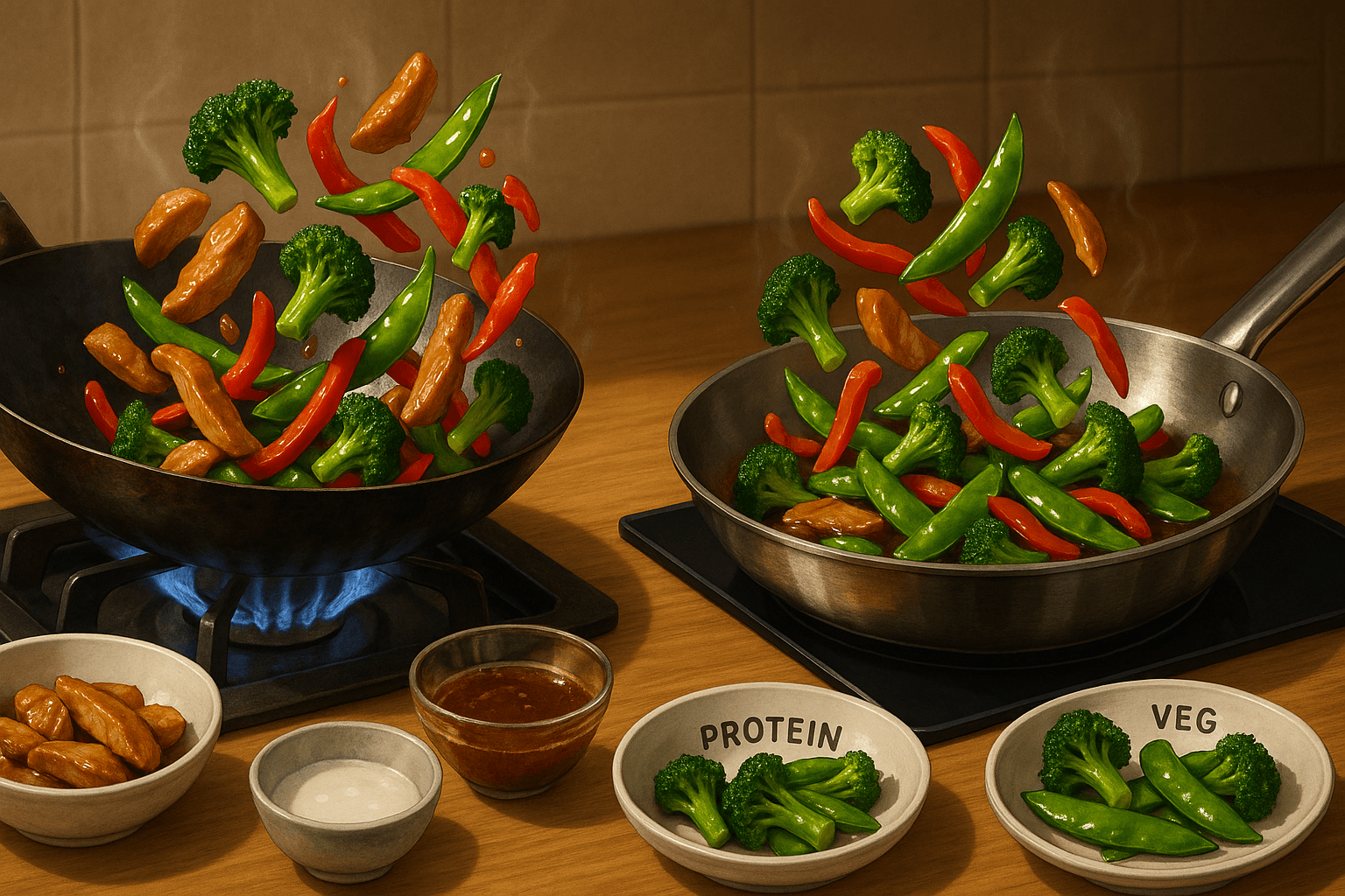 Homemade Stir‑Fry That Isn’t Soggy: Wok vs. Skillet Heat, Sauce Thickening Windows, and the “Cook‑Hold‑Combine” Method for Crisp Veg + Tender Protein