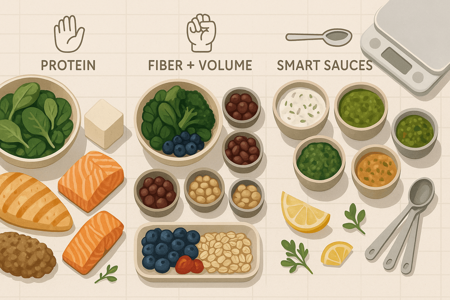Learn a simple system for building macro-friendly meals: pick a protein anchor, calculate portions by hand, and use flavor-packed sauces with smart swaps for high-protein, high-fiber prep.